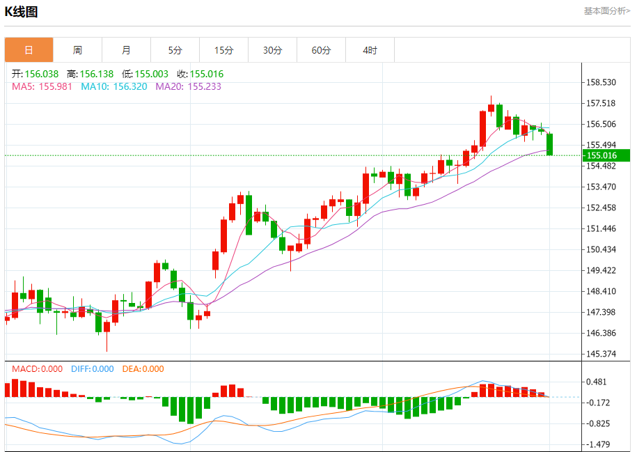 技术点评:跌破155.70支撑位后,将会引发加速下跌至目标位154.70。
