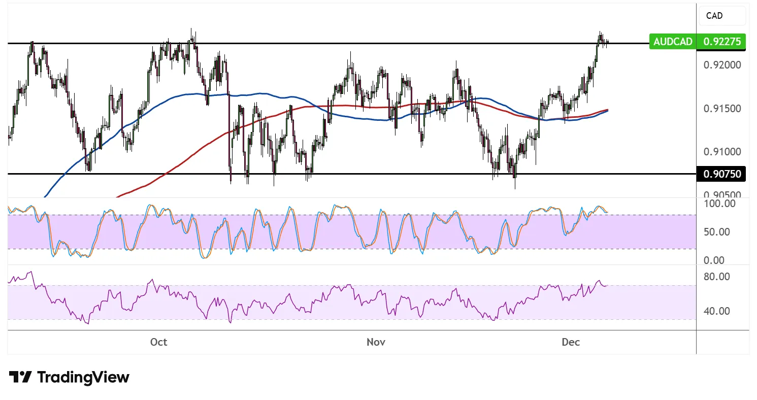 另一方面,突破区间阻力位时,可能会引发与区间阻力相同高度或约150点的反弹。澳元加元可能会受到大宗商品价格和风险情绪的影响,对高收益资产的需求增强可能支持澳元的上涨。