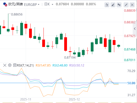 12月19日,欧元/英镑交叉在周五欧洲早盘时段以0.8760平稳交易。此举紧随英格兰银行(BoE)降息以及市场对欧洲央行(ECB)政策稳定的预期。英国11月零售销售报告将在周五晚些时候成为焦点。