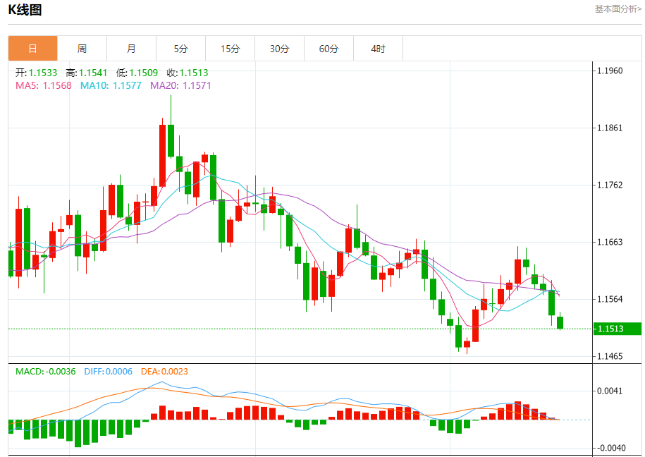 今日周四,欧元兑美元报1.1515,跌幅0.20%;英镑兑美元报1.3061,涨幅0.03%;美元兑日元报157.666,涨幅0.34%。 欧元兑美元汇率分析 技术点评:RI技术指标看跌,有进一步下降空间。 阻力位:1.15901.15701.1550 支撑位:1.14951.14701.1450 英镑兑美元汇率分析 技术点评:RI