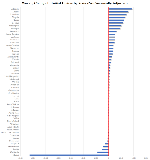 还有,虽然上周的初请失业金人数意外下降,疫情失业金申请人数也有所下降,但这可能是因为伊利诺斯州的数据出现惊人的“大爆跌”。