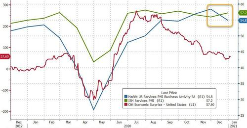 另外零对冲指出,现在美国的“软数据”和“硬数据”描绘了不同的经济前景。美国12月ISM非制造业PMI录得57.2,创去年9月以来新高,但ISM的就业指标逆转了前面3个月的上涨势头,降到了48.2。