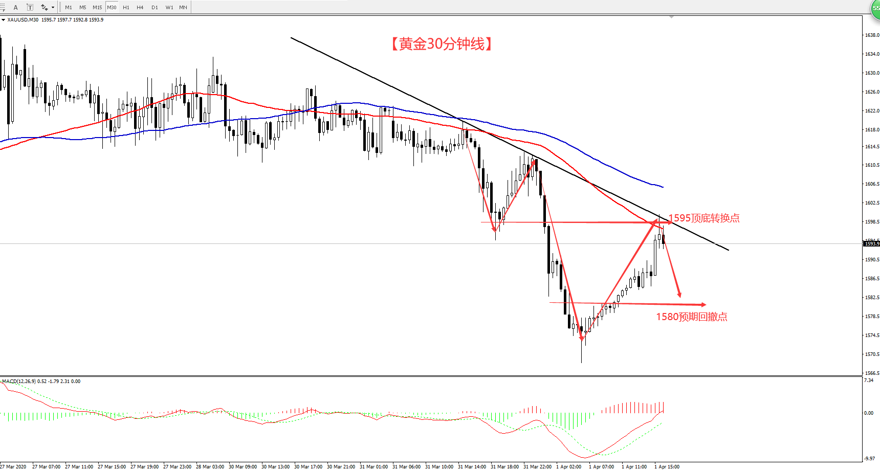 目前,黄金止跌出现小幅反弹,黄金价格短线触及1590美元/盎司之上小幅上涨,晚间黄金如何收官? 本周五将迎重磅的非农数据,市场预计将失去29.3万个工作岗位,而失业率预计将高达4.0%。这些数字似乎过于乐观,预计或将会超过两位数,全球就业形势严重悲观的局面将成为市场避险情绪的一大支柱,故此就算金价回调,