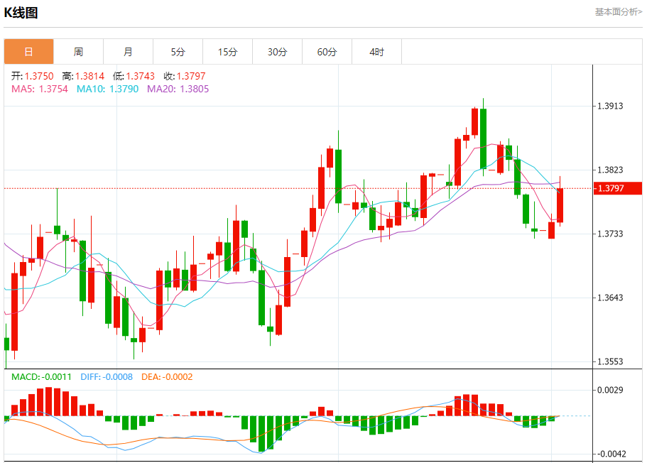 截至目前,美元/加元上涨0.35%,报1.3798。
