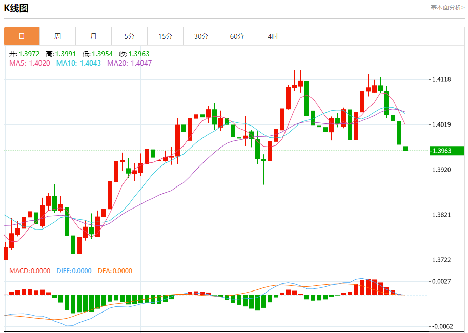 截至目前,美元/加元下跌0.07%,报1.3966。