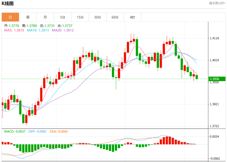 截至目前,美元/加元下跌0.32%,报1.3914。