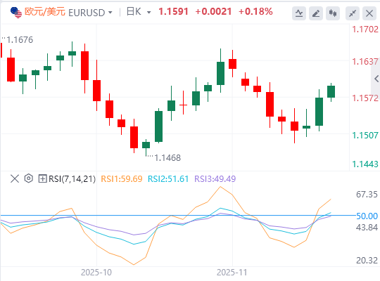 20期简单移动平均线(SMA)已开始向上弯曲,接近50期、100期和200期SMA。现货价格高于所有这些均线,200期SMA位于1.1585,作为支点。相对强弱指数(14)为61.43,显示出看涨动能改善而未出现超买情况。