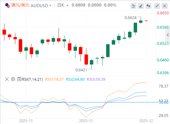 美国10月份个人消费支出(PCE)价格指数将于今天晚些时候公布。核心指标被视为美联储(Fed)偏好的通胀指标,将被用来指导未来降息路径。这反过来将在影响短期美元(USD)价格动态中发挥关键作用,并为澳元/美元汇率提供实质性推动。与此同时,澳大利亚联储与储备银行(RBA)政策展望分歧,应继续为该货币对带来顺风。