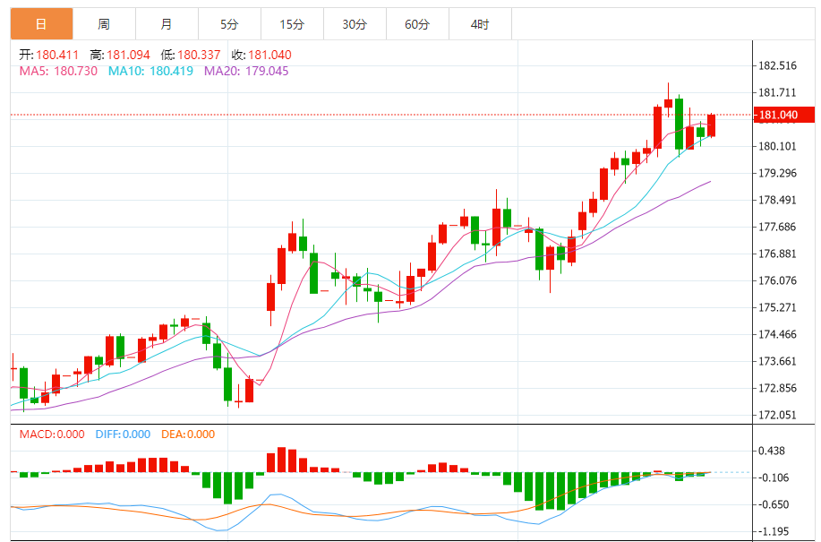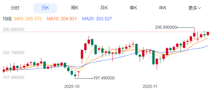 周三,欧元/日元上涨0.36%至181.071附近。 欧元方面,在货币政策维持稳定的背景下,欧元区经济呈现"弱复苏"特征。欧央行在会议声明中指出,尽管面临全球贸易摩擦和地缘政治紧张的挑战,但欧元区经济仍在继续增长。不过,11月公布的欧元区I初值释放了混合信号,制造业I仍处于44.8的收缩区间,连续12个月低于荣枯线