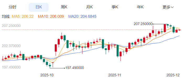 周三,英镑/日元上涨0.03%至206.02附近。 英镑方面,英国央行的政策审慎立场,是支撑英镑汇率的核心基础。最新数据显示,英国11月消费者价格指数(CI)同比升至2.6%,创下8个月以来的新高,核心CI更是从10月的3.3%攀升至3.5%,显著超出市场预期。通胀数据的持续反弹,直接巩固了英国央行维持利率不变的决策——12