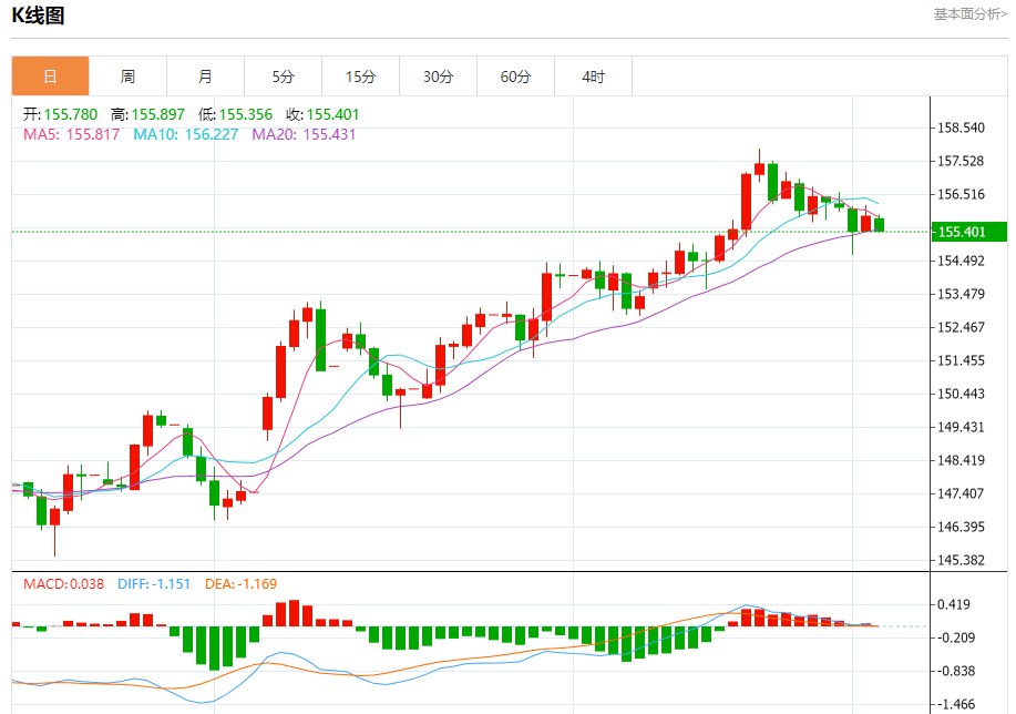周三盘中,美元/日元报155.403,跌幅0.29%。 今日分析:在155.75之下,看跌,目标价位为155.25,然后为154.90。 技术点评:RI技术指标看跌,有进一步向下趋势。 支撑位:155.25154.90154.45 阻力位:156.40156.05155.75 (亚汇网编辑:冰凡)