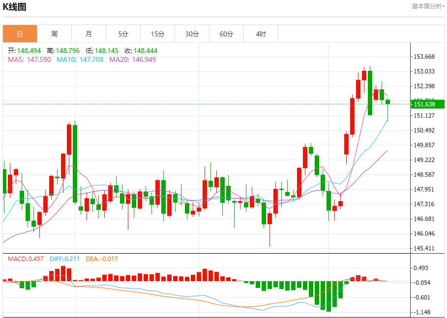 10月16日,周四亚市盘中,美元/日元货币对跌至150.85左右。由于中美贸易紧张局势持续,美元兑日元走弱。美联储(Fd)官员将于周四晚些时候发表讲话,包括迈克尔·巴尔、斯蒂芬·米兰、克里斯托弗·沃勒和米歇尔·鲍曼。 美国总统唐纳德·特朗普周三表示,他看到美国正在与中国打贸易战,尽管财政部长斯科特·贝森特提议