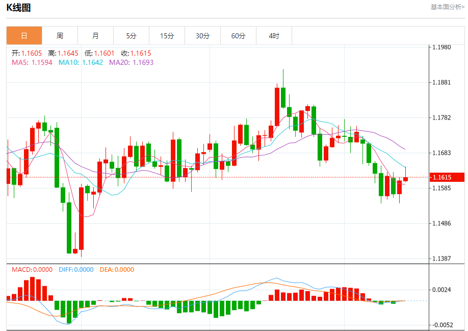 周三盘中,欧元/美元报1.1614,涨幅0.07%。 今日分析:在1.1590之上,看涨,目标价位为1.1645,然后为1.1675。 技术点评:即使我们不能排除持续调整的可能性,其时间长度上,应该是有限的。 支撑位:1.15901.15651.1540 阻力位:1.16951.16751.1645 (亚汇网编辑:冰凡)