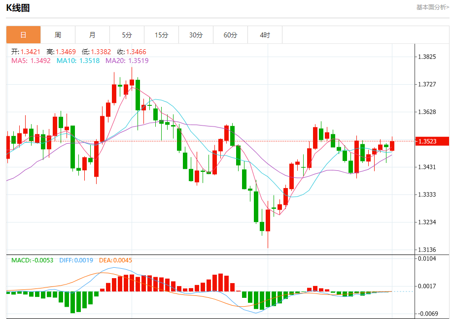 周一盘中,英镑/美元报1.3524,涨幅0.16%。 今日分析:在1.3500之上,看涨,目标价位为1.3550,然后为1.3570。 技术点评:上升突破1.3500阻力位后,将会引发加速上涨至目标位1.3550。 支撑位:1.35001.34801.3460 阻力位:1.36001.35701.3550 (亚汇网编辑:冰凡)