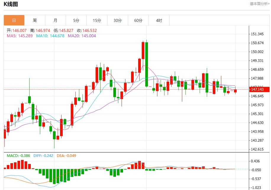 周一盘中,美元/日元报147.157,涨幅0.09%。 今日分析:在147.40之下,看跌,目标价位为146.65,然后为146.45。 技术点评:只要依旧存在147.40阻力位,很可能下跌至146.65。 支撑位:146.65146.45146.25 阻力位:147.80147.60147.40 (亚汇网编辑:冰凡)
