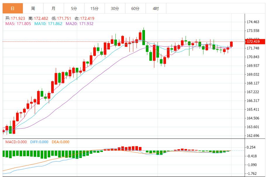 周一,欧元/日元上涨0.36%至172.458附近。 欧元方面,近期欧元区经济数据尽显复杂态势。从经济增长视角来看,欧盟委员会发布的2025年春季经济展望报告显示,由于全球贸易前景不佳、美国加征关税政策存在不确定性以及地缘政治风险等因素,2025年欧元区经济增长率从2024年秋季预测的1.3%下调至0.9%,明年的增长预期