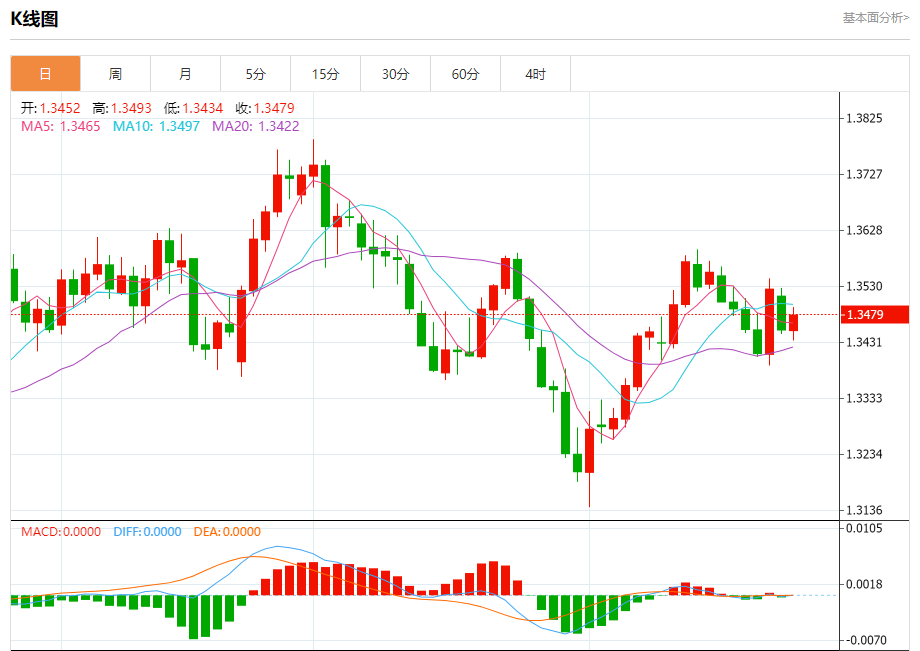 周二盘中,英镑/美元报1.3478,涨幅0.19%。 今日分析:看跌,在1.3523之下。 技术点评:RI技术指标小于中性区域50。ACD技术指标处在其信号线之下看空。配置为负。此外,价位低于其20天及50天移动平均线(分别位于1.3501和1.3510)。 支撑位:1.34181.33951.3372 阻力位:1.35831.35611.3523