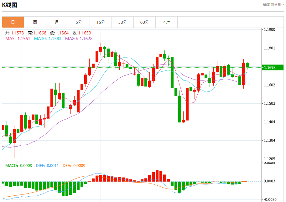 周一盘中,欧元/美元报1.1697,跌幅0.21%。 今日分析:在1.1670之上,看涨,目标价位为1.1740,然后为1.1770。 技术点评:即使我们不能排除持续调整的可能性,其时间长度上,应该是有限的。 支撑位:1.16701.16401.1615 阻力位:1.17901.17701.1740 (亚汇网编辑:冰凡)