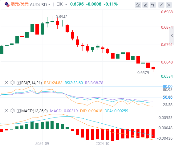 澳元/美元已经跌破0.66,如果不立即反弹至0.66上方,近期可能会跌向0.65。密切关注当前水平附近的价格走势,看看跌势是否会持续下去。