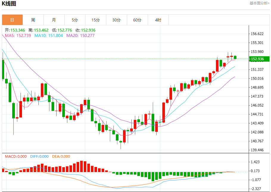 第二阻力位:155.00 第二支撑位:151.50