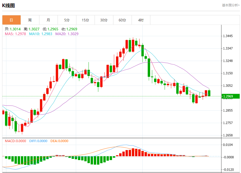 汇价高见1.3027,低见1.2965。上一交易日,汇价收于1.3014。