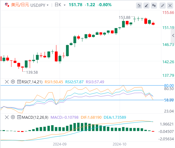 美元/日元在美元波动中有所下跌,近期支撑位可能见于150-148(附近,这表明这个货币对的下行空间有限;它可能从当前水平反弹到更高的水平,或者在近期测试支撑位之后再展开反弹。