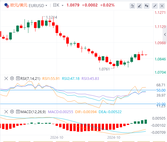 1.0800心理价位是欧元/美元的初始支撑位。再往南,下一个争夺位位于1.0770-1.0760区域,代表10月24日的低点和布林带的下限。突破上述水平可能会暴露1.0666,即6月26日的低点。
