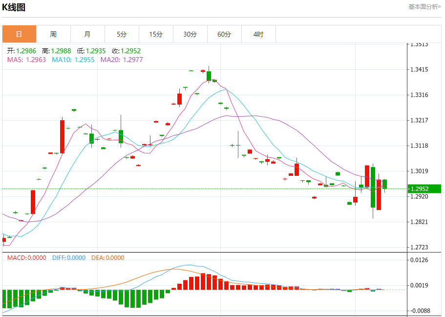 汇价高见1.2988,低见1.2935。上一交易日,汇价收于1.2986。