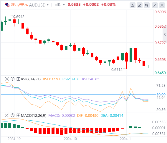 澳元/美元一度触及0.6534低点,之后有所回升。总体而言,0.67-0.65的区间短期内可以保持完好。较低支撑位见于0.64附近。