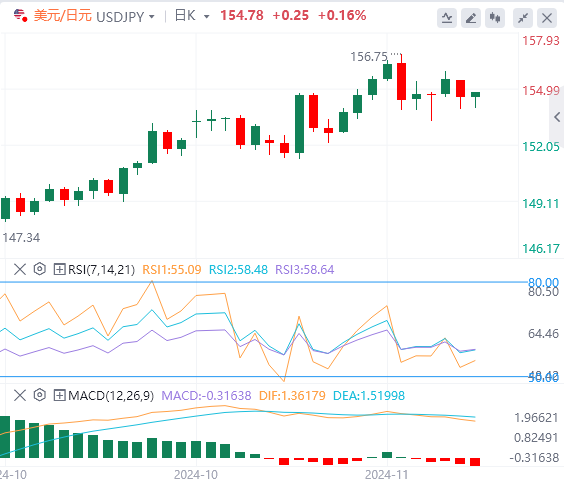 近期表现正面的美国数据让市场对美联储降息路径的预期减弱。根据芝加哥商品交易所的“美联储观察”工具,市场目前预计美联储在12月会议上降息25个基点的可能性为55.9%,低于一周前的72.2%。