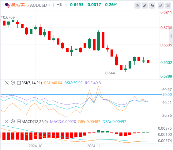 只要保持在0.655下方,那么澳元/美元近期很有可能跌向0.65-0.64。只有上升到0.66以上,才能推迟预期的下跌,并将其推高至0.67。