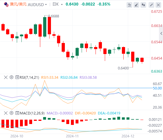 澳元/美元一直在其区间0.6550-0.6400的下端附近震荡。图表上有足够的空间显示该货币对将跌向0.635,但需要确认跌破0.64。密切关注0.64附近的价格走势,看看汇价是否会守住并反弹至更高,或出现进一步下滑。