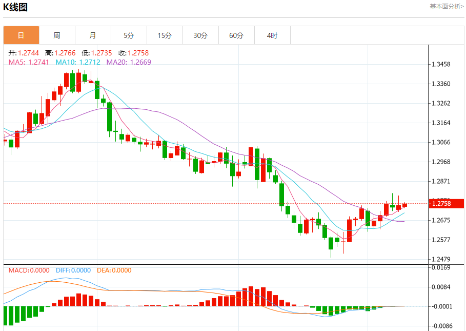 汇价高见1.2766,低见1.2735。上一交易日,汇价收于1.2750。