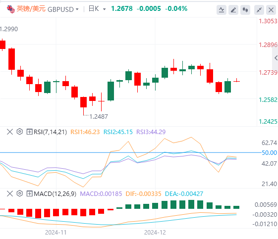 英镑/美元货币对正在下行通道的上边界附近测试其初始阻力位,该阻力位与9天EMA1.2691一致。决定性地突破这一关键水平可能会加强看涨偏见,为向12月6日创下的五周高点1.2811铺平道路。
