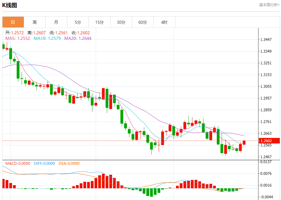 汇价高见1.2607,低见1.2561。上一交易日,汇价收于1.2574。