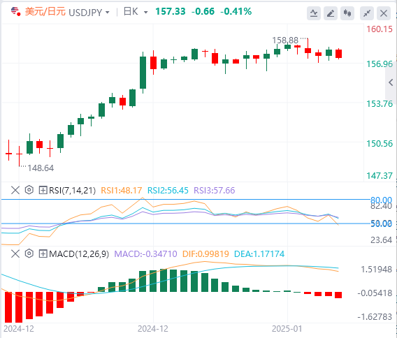 美元/日元无法维持其超过158的上升势头。只有强劲突破158.50-159.00,才能推动美元/日元升至160-162;否则,汇价可能继续在156-158-159区域内进行一段时间的交易。