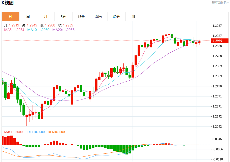 汇价高见1.2949,低见1.2900。上一交易日,汇价收于1.2922。