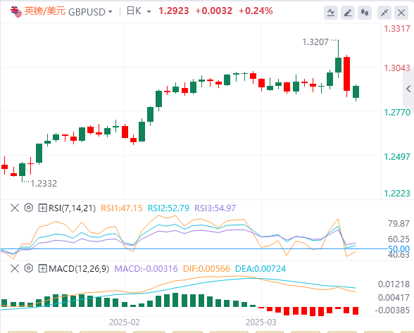 英镑/美元在1.3207停止升势,此后一直在下跌。目前,该货币对已经跌破1.29的支撑位,只要维持在这一水平下方,那么该货币对可能会在近期内被拖至1.280-1.275,然后再试图回升。