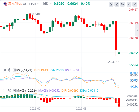 澳元/美元大幅跌破0.62,至0.5932的低点,因市场担心全球贸易战可能使经济陷入衰退,澳洲联储可能在5月份更大幅度的降息。如果这种猜测继续下去,跌势可能会扩大到0.575。该货币对将不得不突破阻力位0.61上方,以抵消预期的跌势。