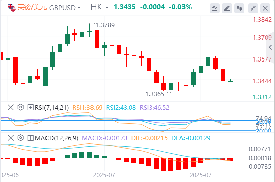 主要货币对值得关注的第一个上行目标是1.3588,即7月24日的高点。如果涨幅扩大,可能会反弹至7月4日的高点1.3681。再往北,下一个障碍位于布林带的上限1.3725。