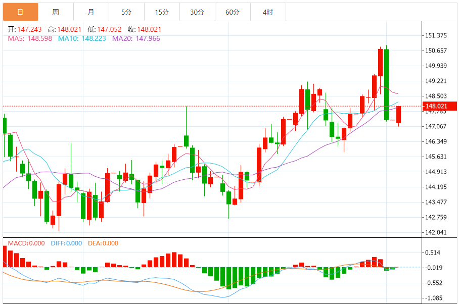 周五(8月1日),美元/日元下跌150.569,暂报150.541,跌幅0.14%。 市场基本面分析 7月31日,日本央行货币政策决策会议决定,将作为政策利率的无隔夜拆借利率维持在0.5%左右的水平不变。出席货币政策会议的9名央行审议委员一致同意了上述决定。 日本央行曾于今年1月会议中将政策利率从约0.25%上调