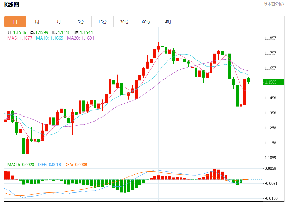周一晚间,美元指数现报98.820,涨幅0.13%,现对美元兑欧元、英镑、日元主要货币对分析表述如下: 欧元/美元 汇价高见1.1595,低见1.1549。上一交易日,汇价收于1.1594。 基本面:欧盟银行业管理局(BA)上周五在提交其最新的银行业健康检查结果时表示,欧盟各国的银行有足够的实力抵御地缘政治和