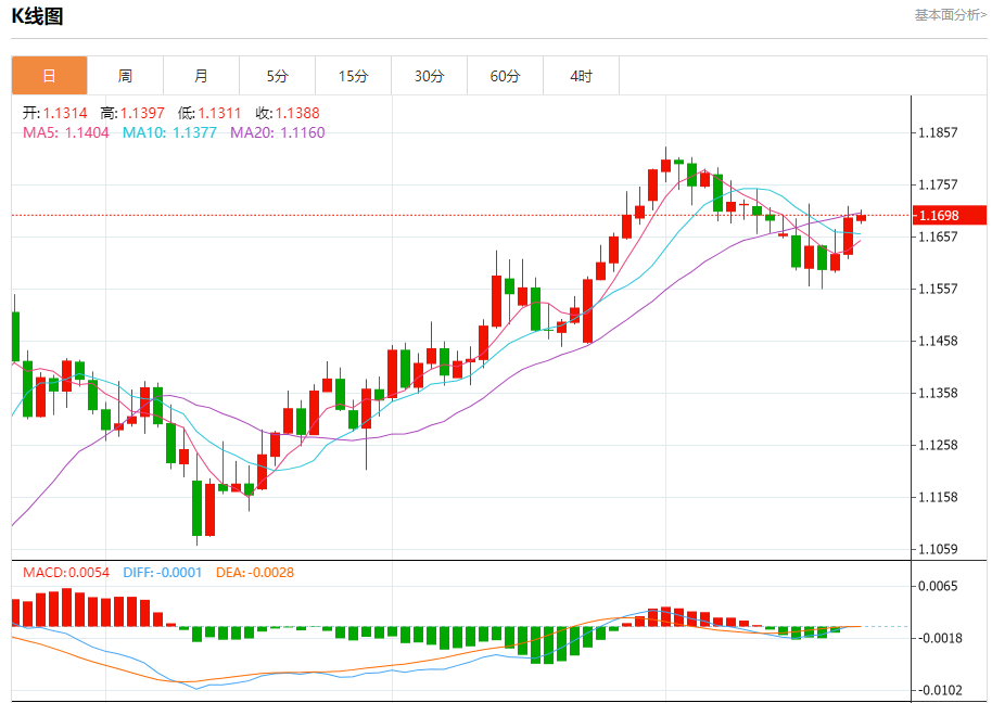 周二晚间,美元指数现报97.821,跌幅0.01%,现对美元兑欧元、英镑、日元主要货币对分析表述如下: 欧元/美元 汇价高见1.1709,低见1.1681。上一交易日,汇价收于1.1691。 基本面:美国国债收益率持续回落,美元承压走弱,为欧元带来提振。与此同时,欧洲央行发布的企业融资调查显示,欧洲企业对经