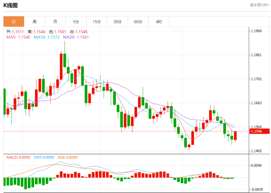 周五晚间,美元指数现报100.356,涨幅0.14%,现对美元兑欧元、英镑、日元主要货币对分析表述如下: 欧元/美元 汇价高见1.1552,低见1.1496。上一交易日,汇价收于1.1527。 基本面:欧洲央行管委表示,对当前的政策立场感到满意,并警告不要因通胀可能低于目标而反应过度。目前的利率设置处于一个不