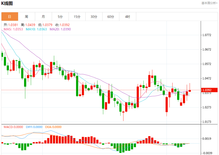 周四晚间,美元指数现报107.809,跌幅0.18%,现对美元兑欧元、英镑、日元主要货币对分析表述如下: 欧元/美元 汇价高见1.0439,低见1.0379。上一交易日,汇价收于1.0382。 基本面:欧洲央行执行委员会成员表示,欧洲央行降低借贷成本并不能解决欧元区经济面临的结构性挑战。降息可以缓解经济疲软,