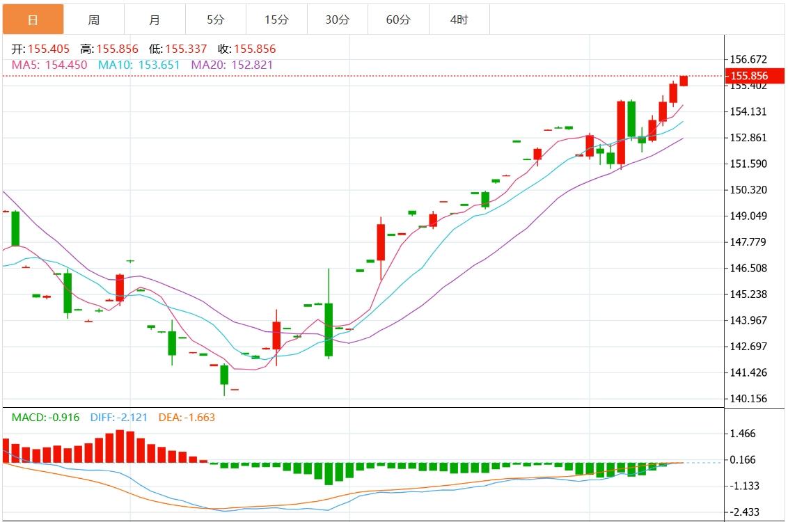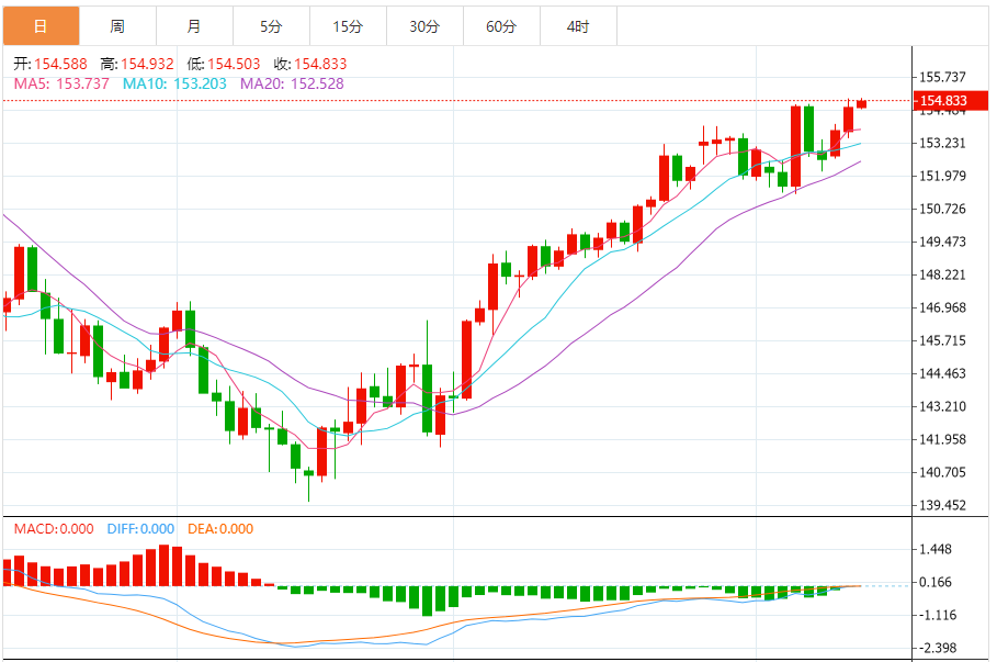 周三(11月13日),美元/日元上涨154.837,暂报154.827,涨幅0.15%。 市场基本面分析 市场参与者现在似乎相信,日本的政治格局可能会让日本央行(BoJ)难以进一步收紧货币政策。 此外,日本央行10月会议的意见摘要显示,政策制定者在是否再次加息的问题上存在分歧。 与此同时,对美国当选总