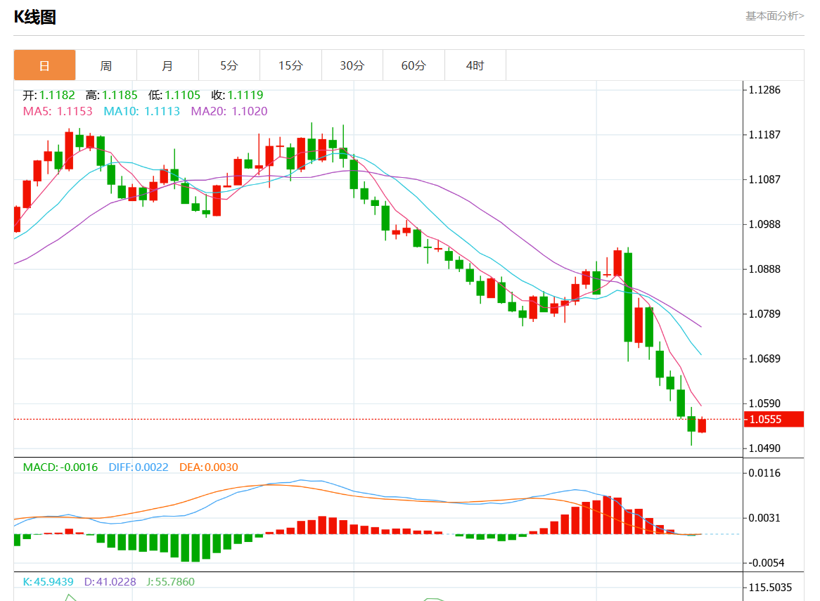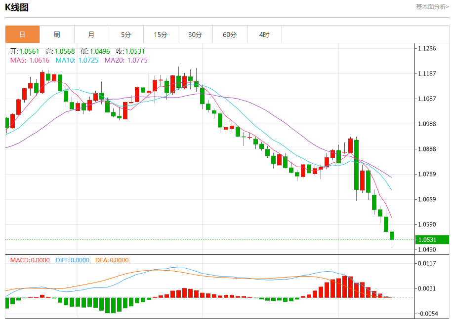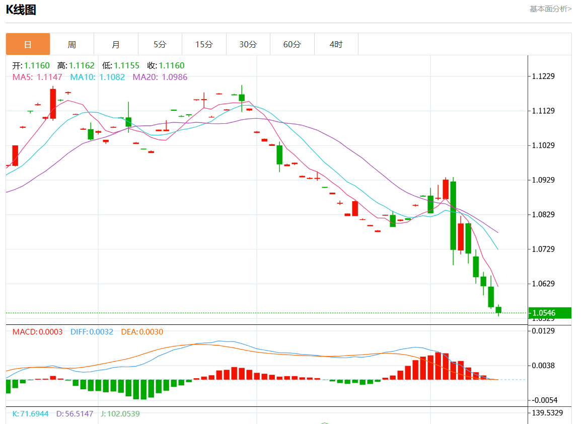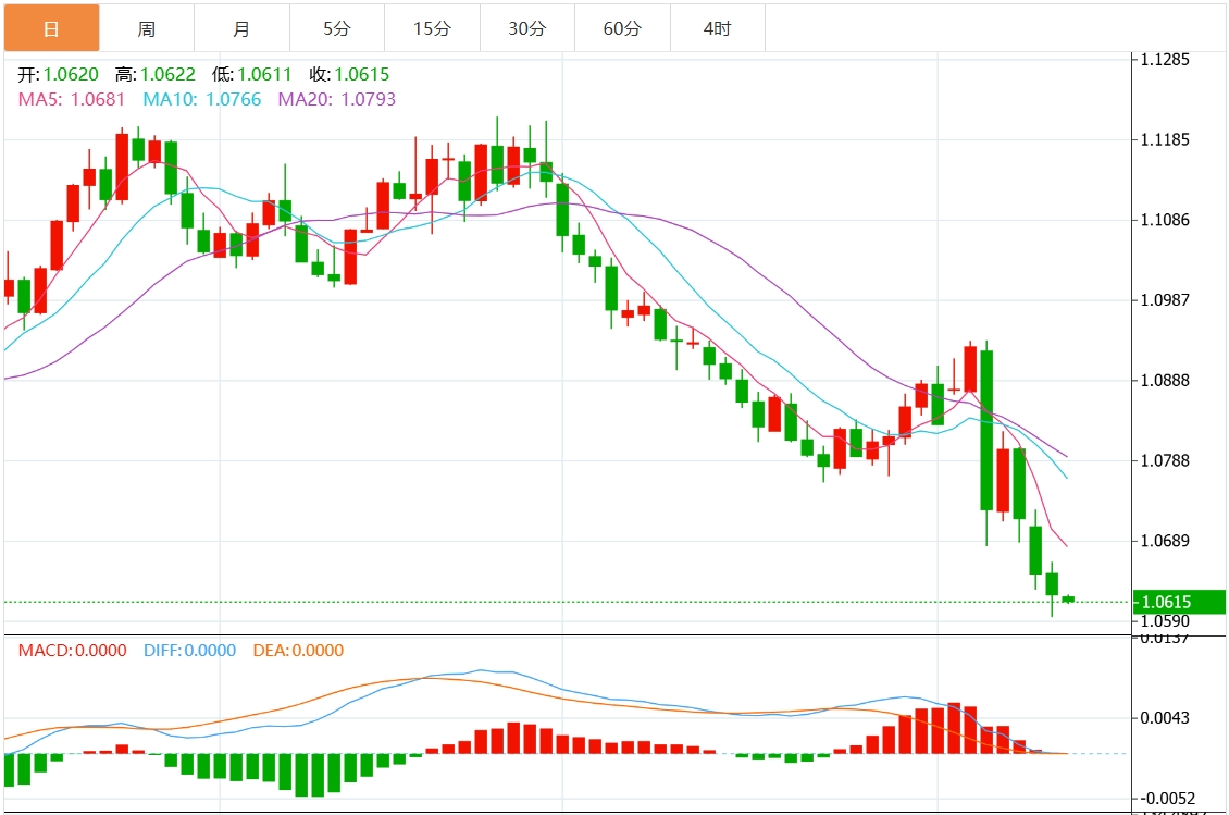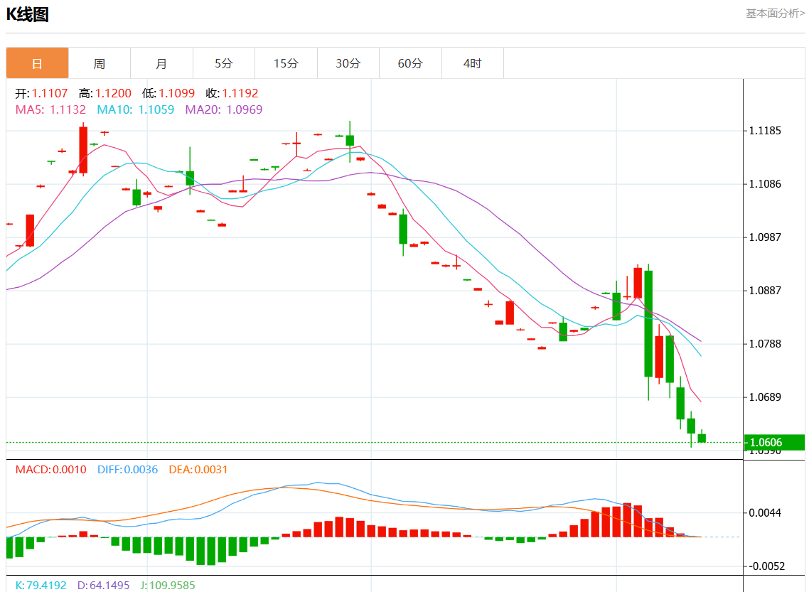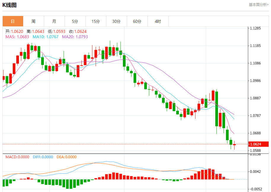 周三欧市盘中,欧元/美元最新报1.0632,日图跌0.08%。 今日分析:在1.0650之下,看跌,目标价位为1.0590,然后为1.0565。 技术点评:跌破1.0650,为空头信号,向下的目标将会是1.0590。 支撑位:1.07201.06851.0650 阻力位:1.05901.05651.0540 (亚汇网编辑:静香)