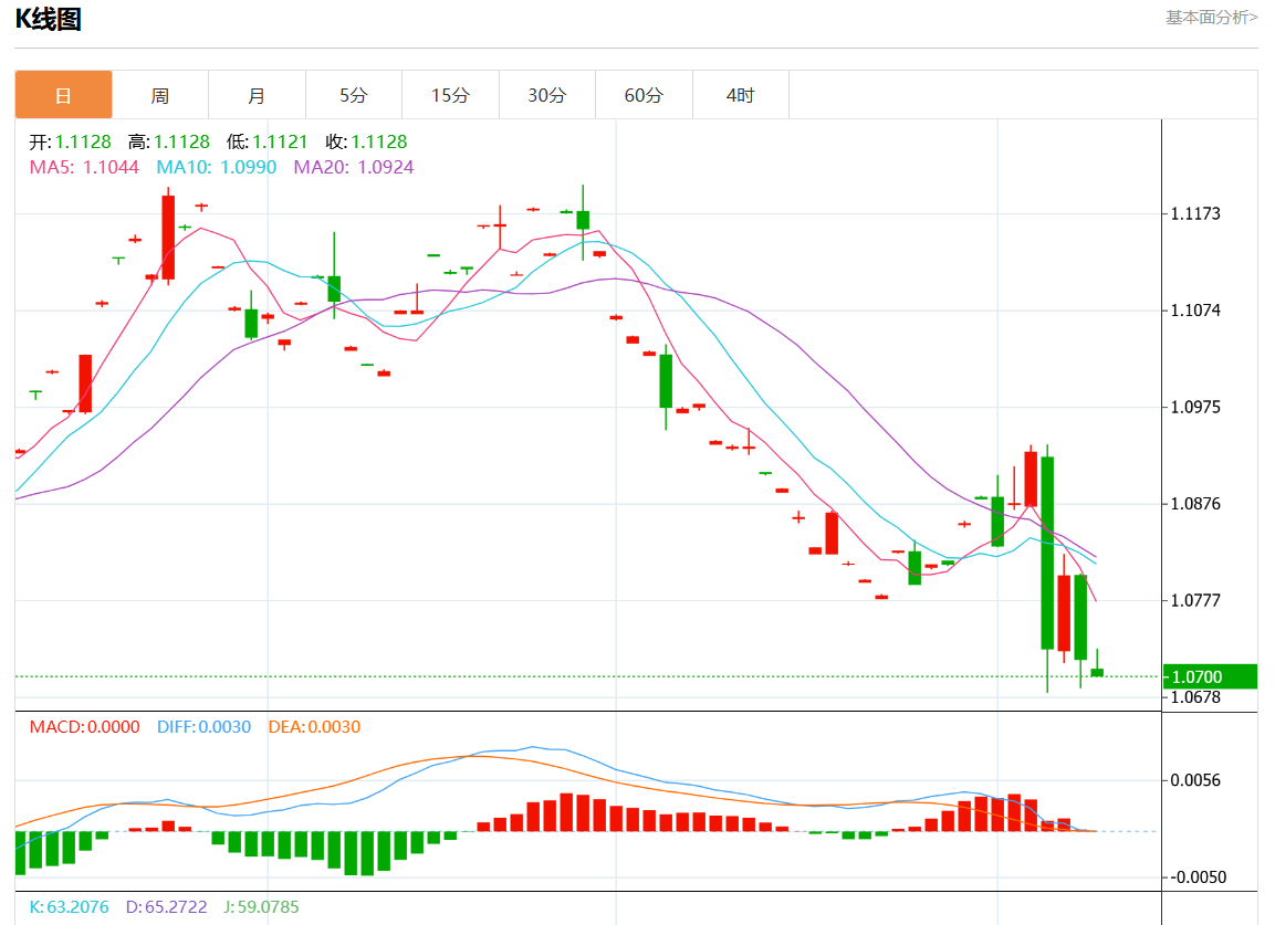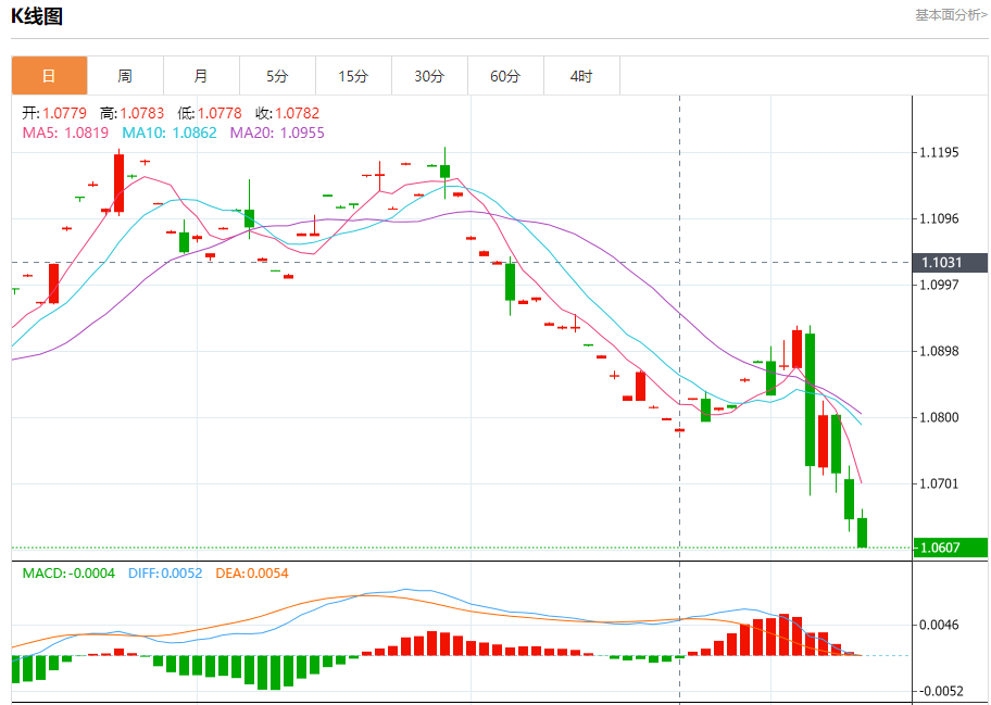 周一欧市盘中,欧元/美元最新报1.0703,日图跌0.13%。 今日分析:在1.0650之上,看涨,目标价位为1.0935,然后为1.1000。 技术点评:RI技术指标运行趋势复杂,应谨慎操作。 支撑位:1.12001.10001.0935 阻力位:1.06501.05001.0450 (亚汇网编辑:静香)