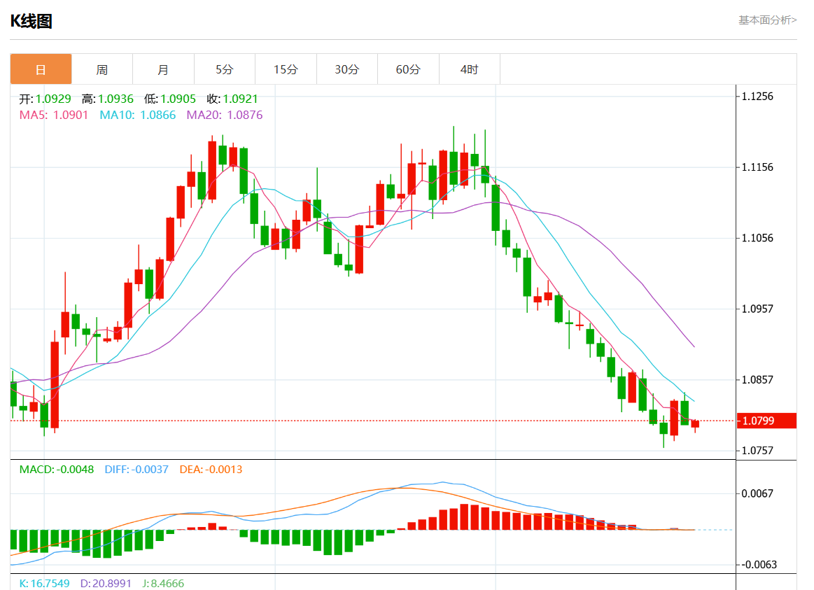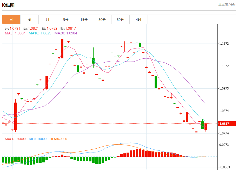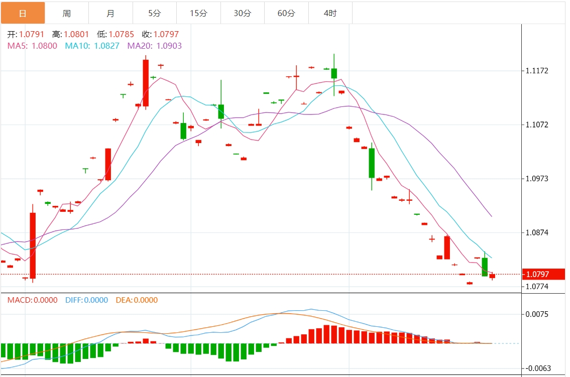 周一欧市盘中,欧元/美元最新报1.0798,日图涨0.04%。 今日分析:在1.0805之下,看跌,目标价位为1.0775,然后为1.0760。 技术点评:RI技术指标呈现进一步向下趋势。 支撑位:1.08401.08201.0805 阻力位:1.07751.07601.0745 (亚汇网编辑:静香)