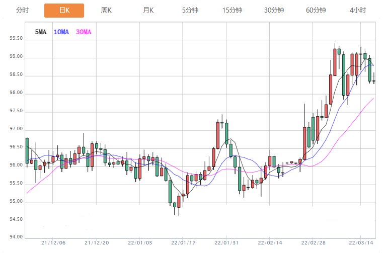 阻力位:99.25 99.5 99.81
